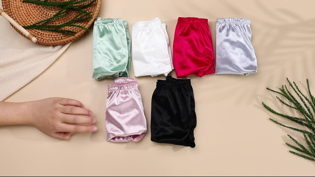 這些緞面柔軟的彈性低層女子內衣具有絲滑的材料,在皮膚上感覺光滑。它們具有舒適的彈性腰部,並有各種珠寶色調的顏色可供選擇。