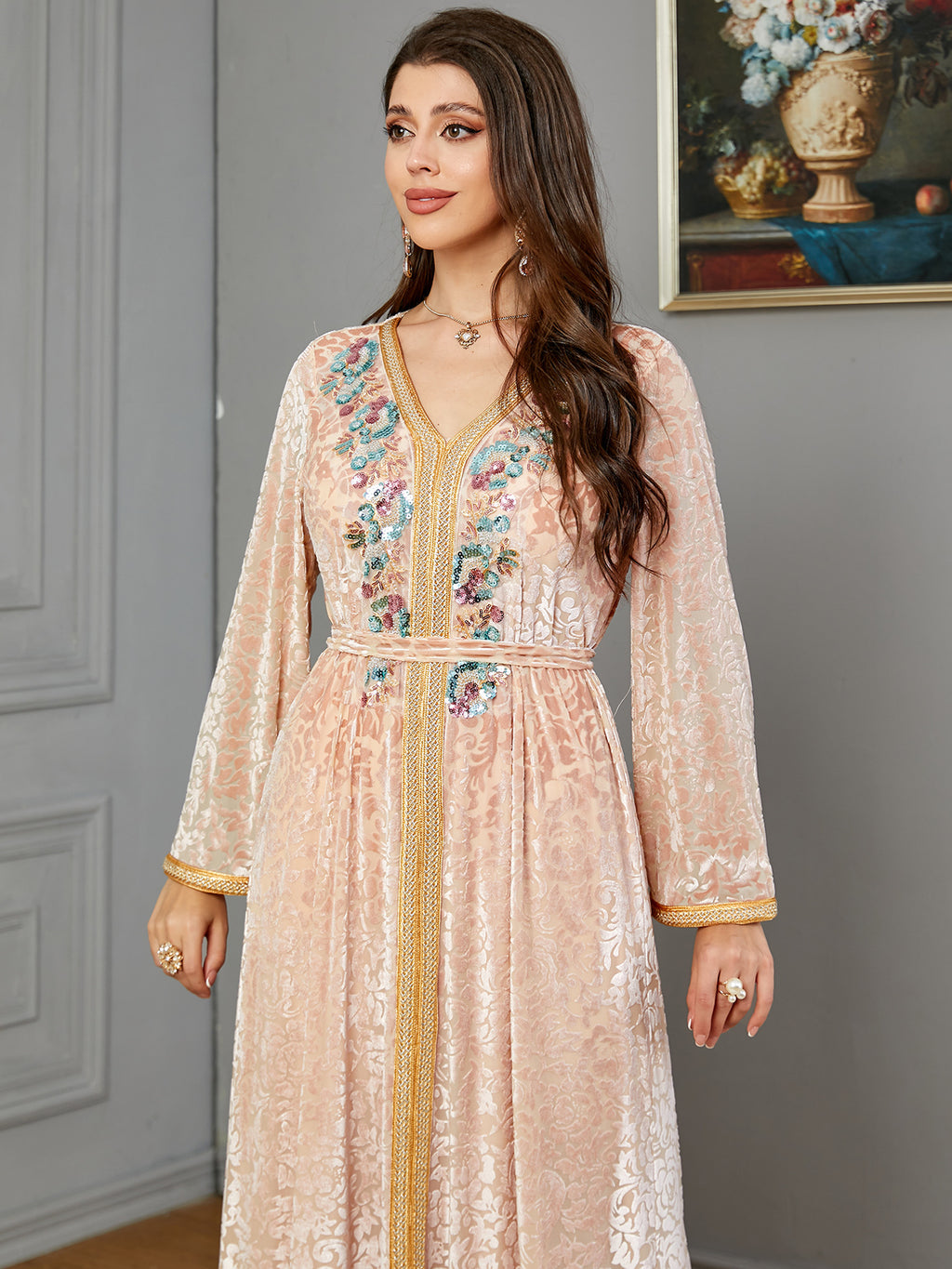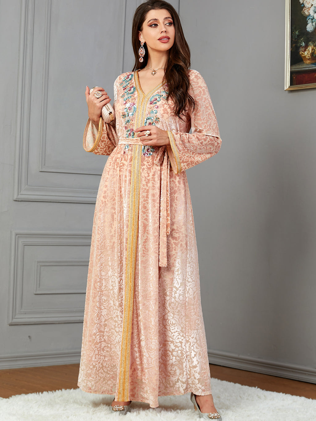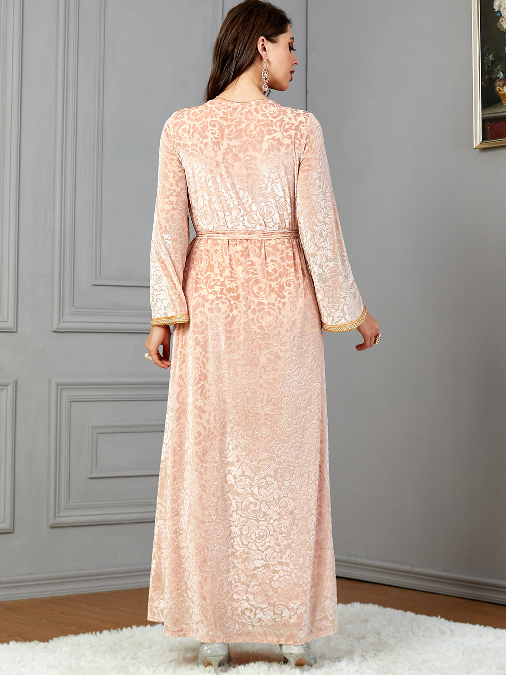 Women's Long Sleeve Champagne and Blue Maxi Dress