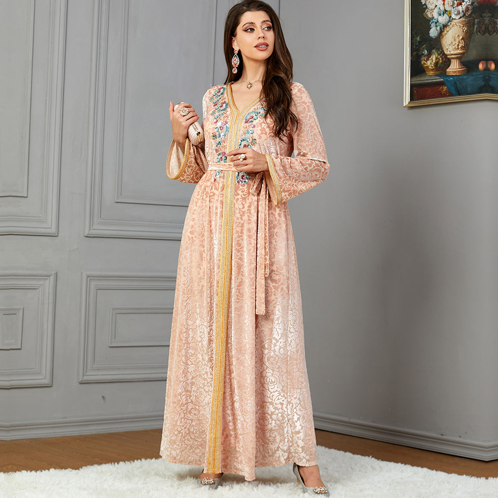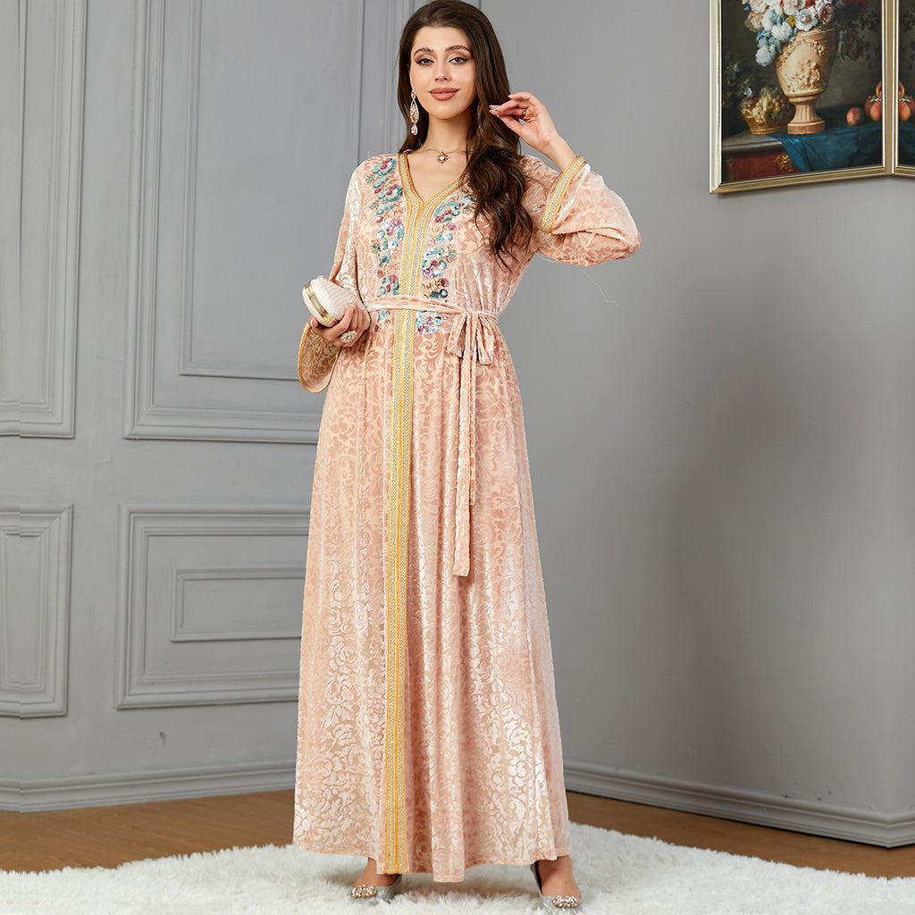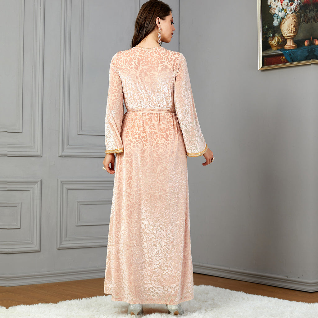 Women's Long Sleeve Champagne and Blue Maxi Dress