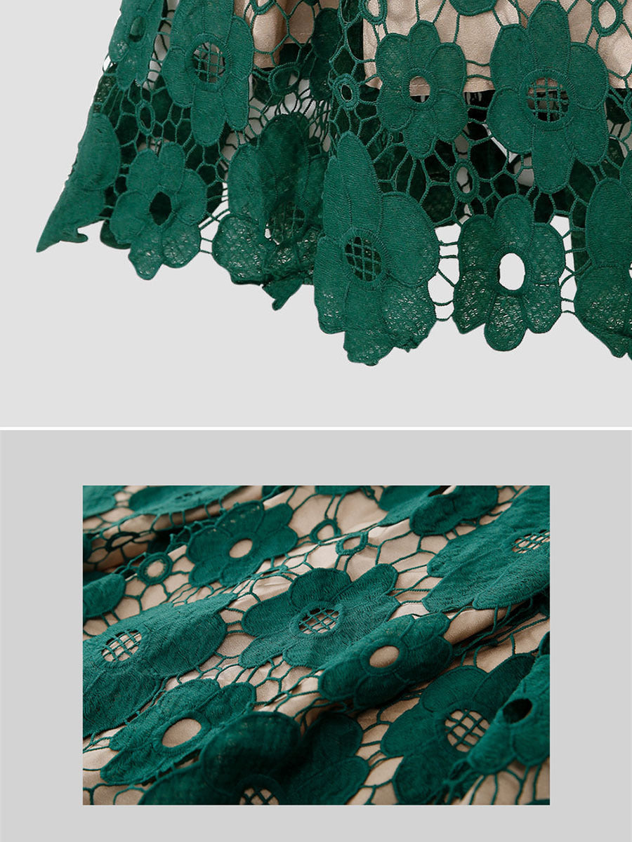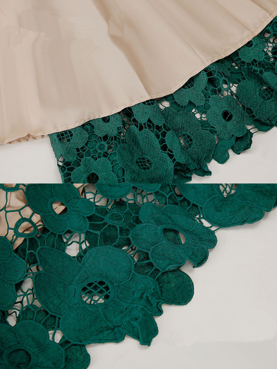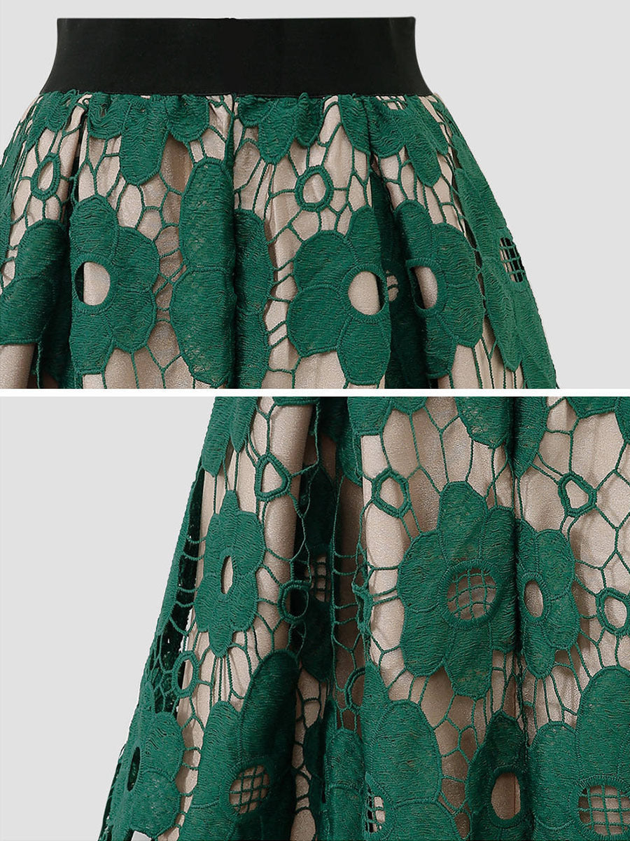 Add intrigue to your daily style with the Women's Cream Midi Skirt with Black Floral Lace Overlay. It features a flattering high waist that works well with other vintage outfit elements.