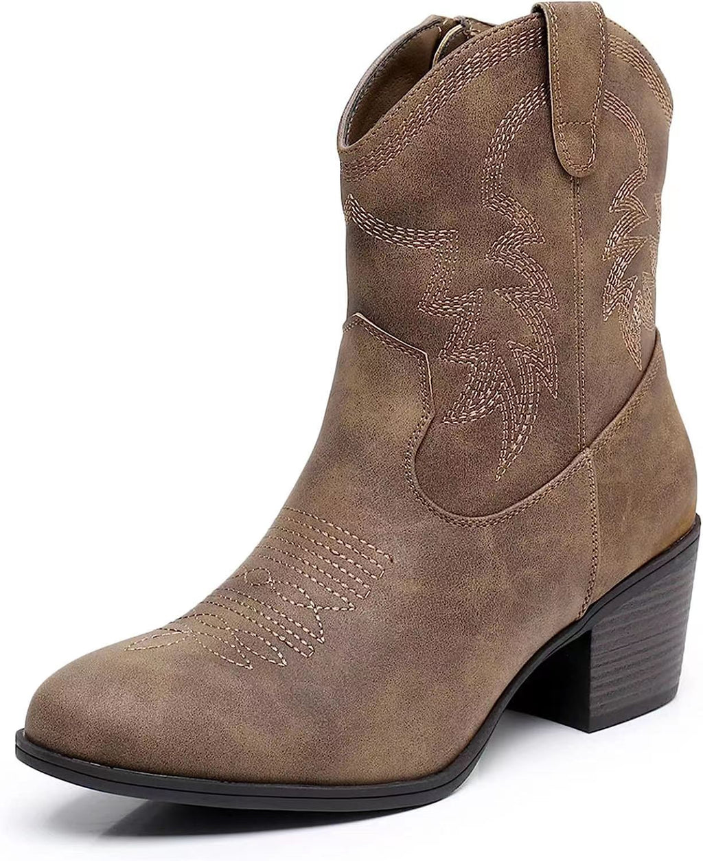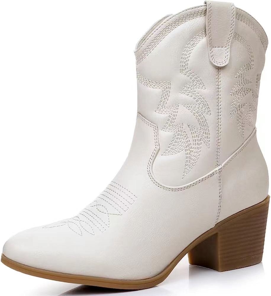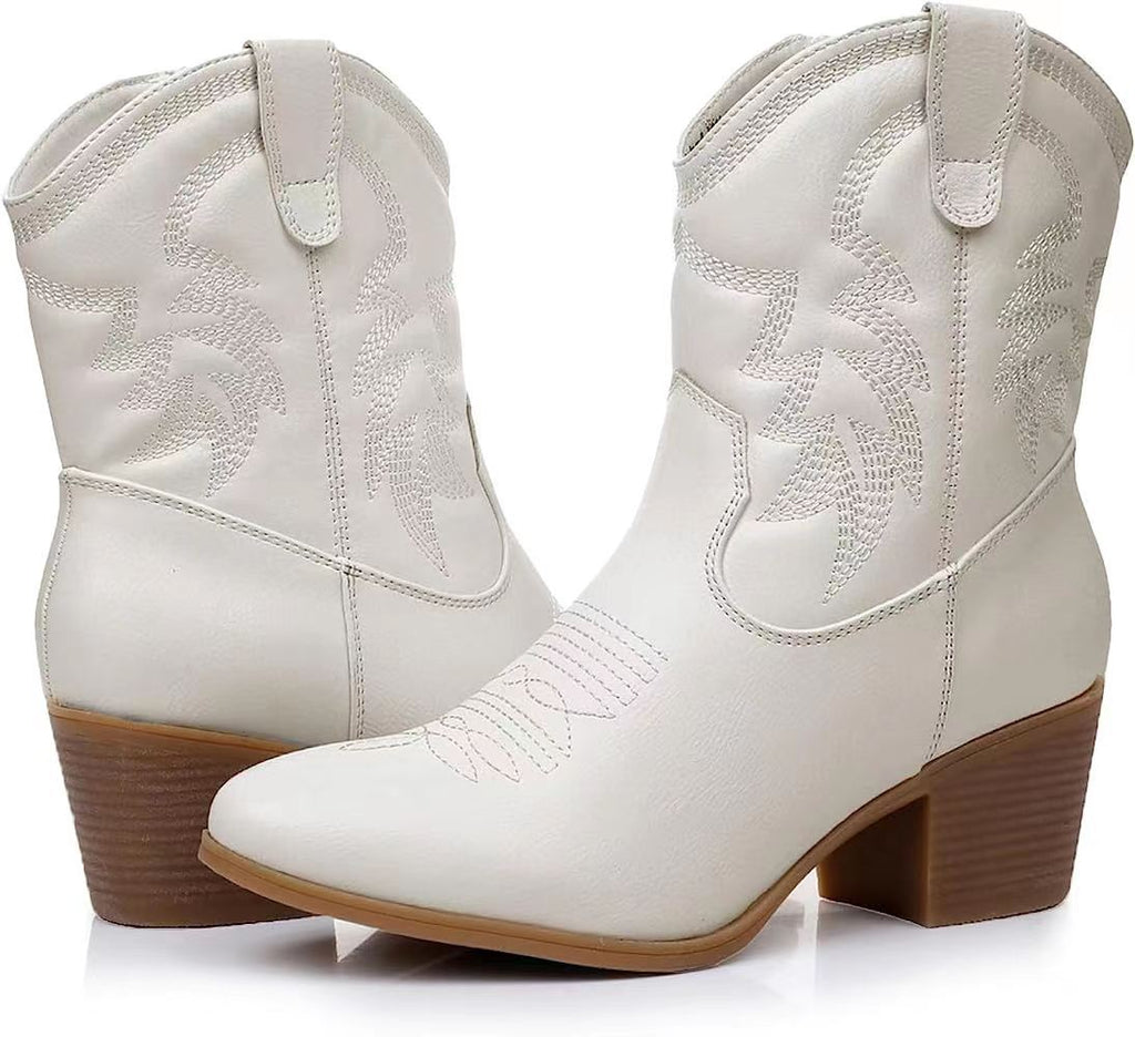 Women's Trendy Decorative Stitching Leather Ankle Height Cowgirl Boots